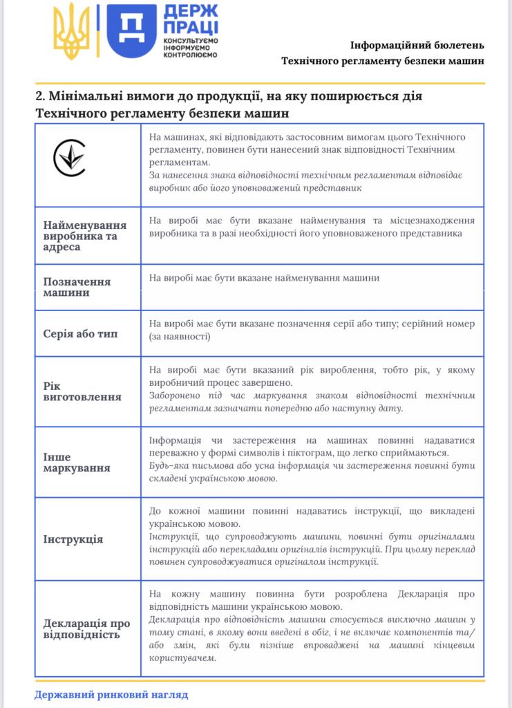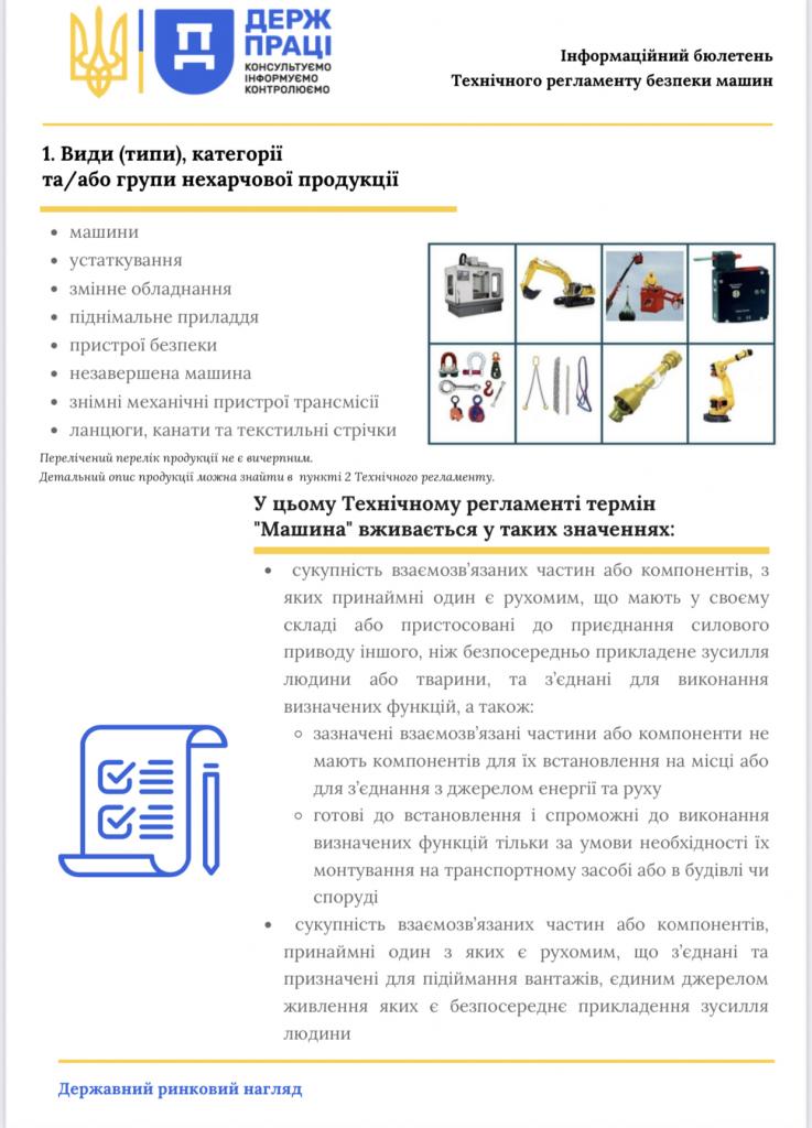 Цей Технічний регламент встановлює вимоги до машин щодо захисту життя або здоров’я людини, захисту тварин або рослин, а також майна та охорони навколишнього природного середовища, процедуру оцінки відповідності машин та вимоги до їх обігу на ринку України та/ або введення в експлуатацію.