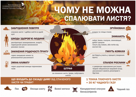 Відповідно до Правил утримання жилих будинків та прибудинкових територій, затверджених наказом Державного комітету України з питань житлово-комунального господарства від 17.05.2005 № 76, cпалювання всіх видів відходів на даній території домоволодінь і в сміттєзбірниках забороняється.