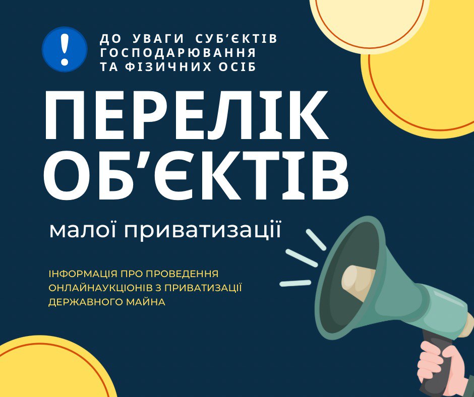 До уваги зацікавлених суб’єктів господарювання та фізичних осіб громади. Інформуємо про проведення аукціонів з приватизації державного майна. Регіональне відділення Фонду державного майна України у Львівській області у травні 2023 року проводить онлайн–аукціони з приватизації державного майна.