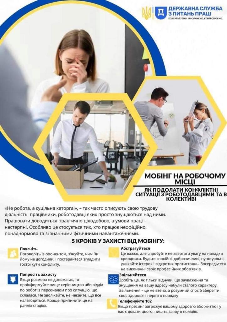 Згідно статті 2-2 КЗпП України мобінг (цькування) – систематичні (повторювані) тривалі умисні дії або бездіяльність роботодавця, окремих працівників або групи працівників трудового колективу, які спрямовані на приниження честі та гідності працівника, його ділової репутації, у тому числі з метою набуття, зміни або припинення ним трудових прав та обов’язків, що проявляються у формі психологічного та/або економічного тиску, зокрема із застосуванням засобів електронних комунікацій, створення стосовно працівника напруженої, ворожої, образливої атмосфери, у тому числі такої, що змушує його недооцінювати свою професійну придатність.