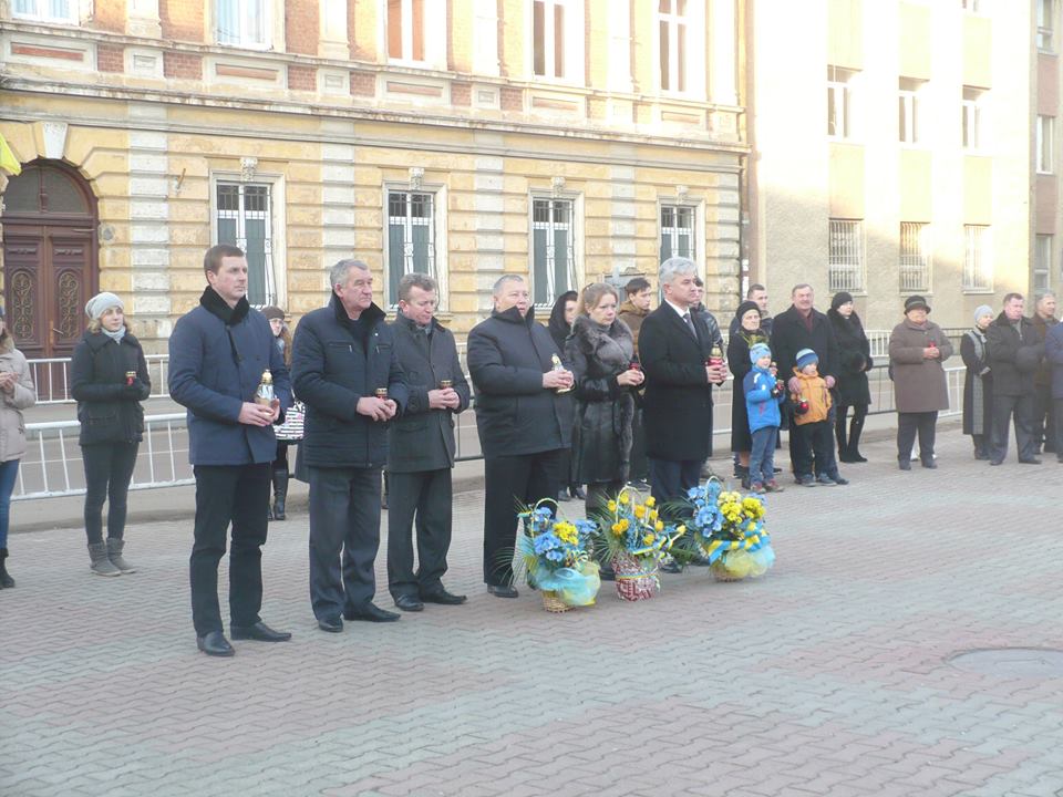 О 16.00 год. учасники заходу хвилиною мовчання вшанували жертв голодоморів та запалили свічки. На завершення учасники події виклали перед пам’ятником символічний Хрест з лампадок в знак скорботи за жертвами Голодомору.