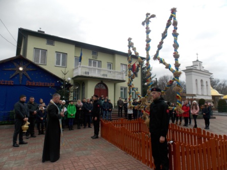 Як і було анонсовано, сьогодні, 4 січня 2018 року, о 13 годині на площі, що перед храмом Благовіщення Пресвятої Богородиці, за участю патріотів Апостольської чоти та городківчан настоятель храму о.Михайло Греділь провів процедуру освячення майже п’ятиметрового дідуха.