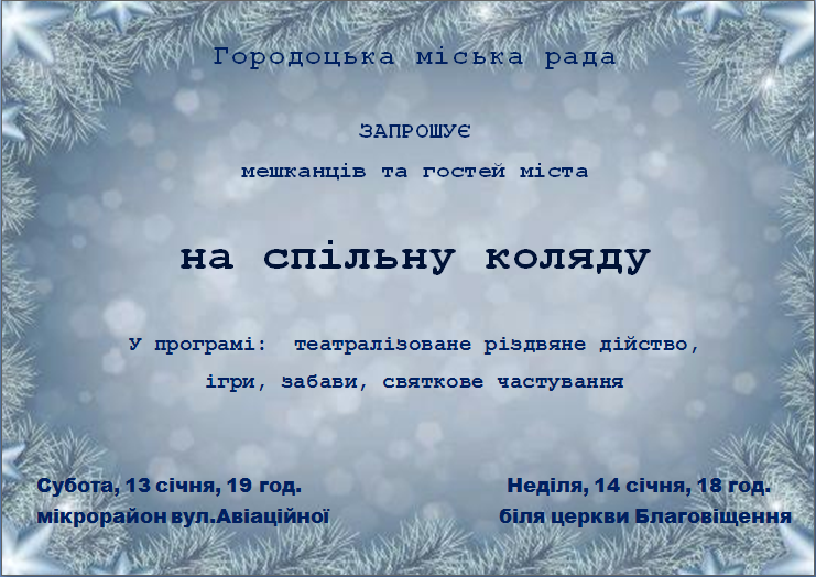 Анонс: 13 та 14 січня Городоцька міська рада запрошує на спільну коляду!