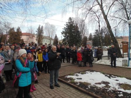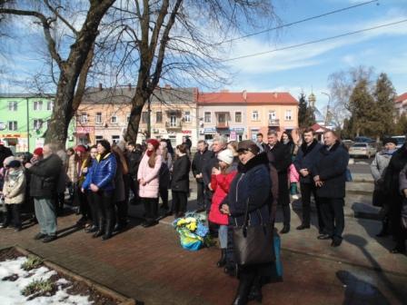 Сьогодні у Городку біля погруддя Тараса Шевченка в рамках проведення загальнообласної акції відбулися заходи, приурочені 204 річниці від дня народження Великого Кобзаря.