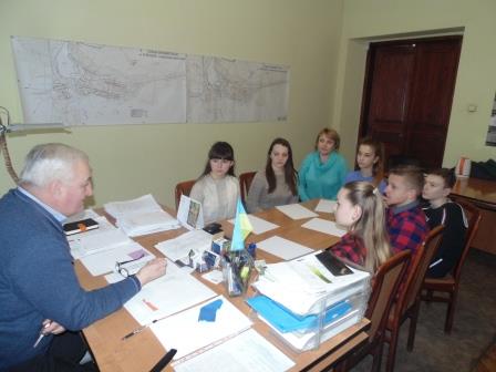 З цієї нагоди сьогодні під керівництвом вчителя географії Валентини Петрович учні прибули у Городоцьку міську раду. В мерії вони у формі круглого столу поспілкувались із першим заступником міського голови Іваном Процем.