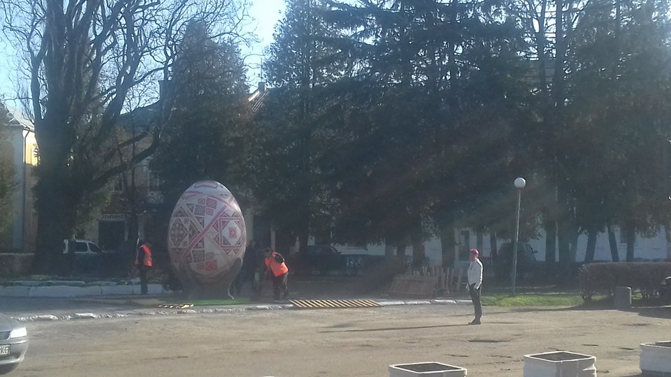 Над створенням передсвяткової атмосфери - встановленням писанки, її оновленням, прибиранням довкола від ранку трудились працівники КП "Міське комунальне господарство" та ТОВ "Тройдбуд".