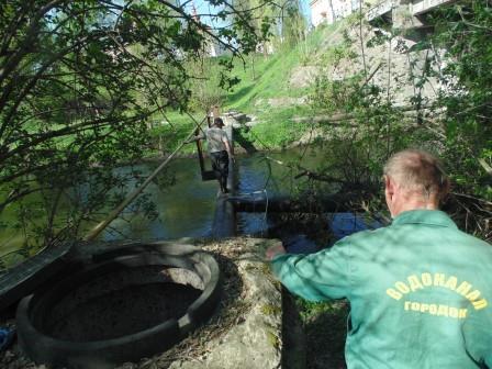 Сьогодні вранці наші комунальники із КП «Городоцьке водопровідно-каналізаційне господарство» були ошелешені побаченим: на вул.Львівській вандали пошкодили каналізаційну трубу (сталеву, діаметром 250 см), що пролягає над Верещицею!