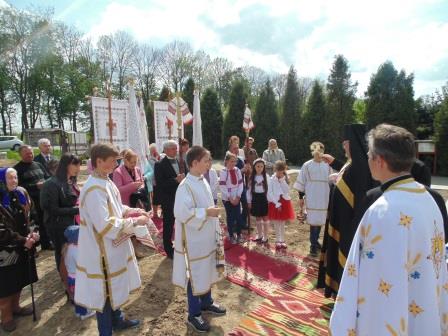 Настоятель церкви святих рівноапостольних Володимира і Ольги о.Олег Барбуляк запросив з нагоди цієї події єпарха Стриської єпархії УГКЦ, преосвященного владику Тараса Сеньківа. Єпископ очолив чин освячення каменя, підписав благословенний документ, закрив його у капсулі, яку замурували у збудованому фундаменті майбутньої святині. Взяв участь у заході міський голова Городка Роман Кущак.
