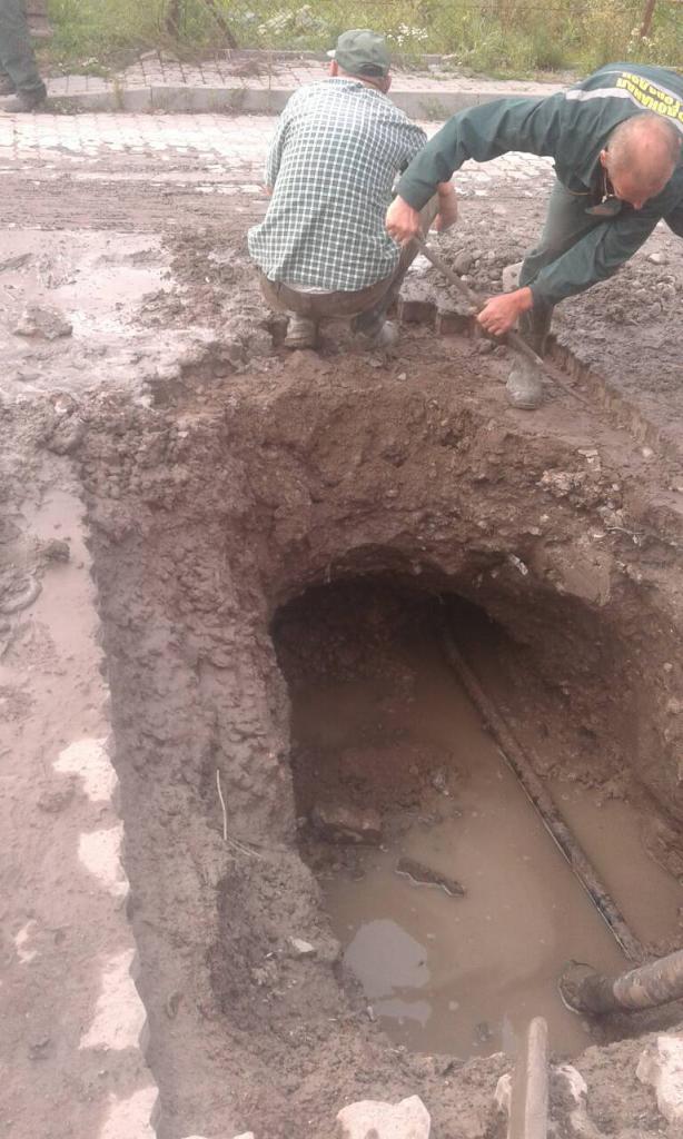 Працівники та відповідна техніка комунального підприємства «Городоцьке водопровідно-каналізаційне господарство», де керівником Любомир Колодій, приступили до ліквідації місця витоку води.