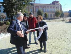 На даний час підрядники виконують роботи із прокладання бруківки на майдані Гайдамаків, із підсиленим дорожнім одягом у вигляді щебеневого покриття, оскільки в даному місці передбачено рух та тимчасову стоянку вантажних та легкових автомобілів.