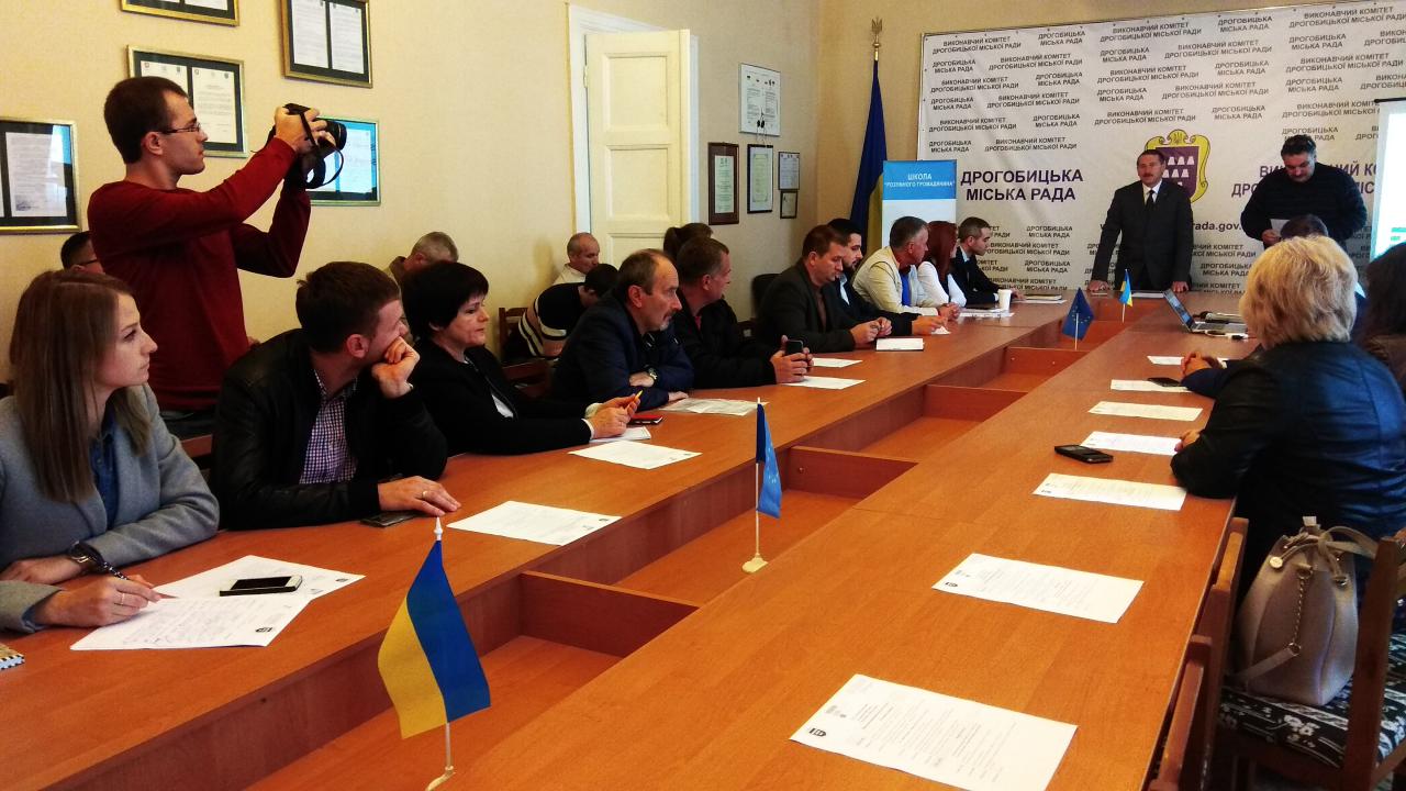 Сьогодні Дрогобицька міська рада проводить круглий стіл на тему реалізації розумного урядування та успішного впровадження зручних електронних сервісів для мешканців. Учасників круглого столу привітав міський голова Дрогобича Тарас Кучма, про смарт-технолонії розповідають керівник КУ "Інститут міста Дрогобич" Володимир Кондзьолка, керівник "Дрогобич - Smart City" Станіслав Гайдер, керівник Західноукраїнського представництва Міжнародного фонду "Відродження" Оксана Дащаківська.