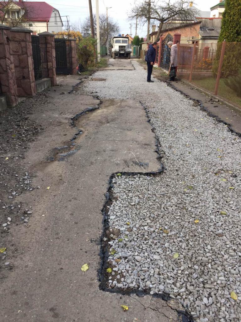 На замовлення Городоцької міської ради ТзОВ «Агрошляхбуд -32», де керівником Омелян Дунас, проводить роботи з поточного ремонту дорожнього полотна на вулиці Горішній. Зокрема, асфальто-бетоном шляховики задіюють вибоїни, які утворилися внаслідок експлуатації вулиці.