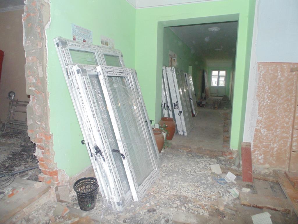 На сьогодні ремонтники вже зробили чималий обсяг робіт по демонтажу старих конструкцій, що готувались під знесення – зокрема і старі дерев’яні сходи між поверхами. Також на об’єкт вже завезено нові металопластикові вікна (27 штук) – всі вікна на поверсі буде замінено на нові, цю роботу розпочнуть завтра.