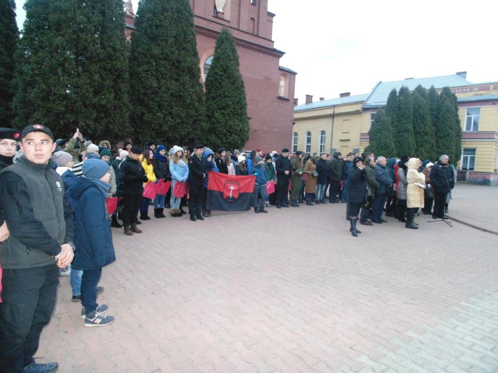 Усі долучилися до Всеукраїнської акції "Запали свічку", виклавши перед пам’ятиком символічний хрест із лампадок. Захід продовжили члени ГО "Апостольська Чота", які запустили у небо ліхтарики як символ чисельно загиблих душ українців.