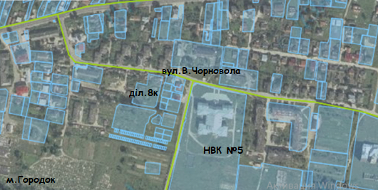Категорія земель проданої ділянки – землі житлової та громадської забудови; цільове призначення ділянки 8к на вул.В.Чорновола (на фотокопії – витяг з публічної кадастрової карти) – для будівництва та обслуговування будівель торгівлі; вид використання – для будівництва та обслуговування ринку сільськогосподарської продукції із торговими павільйонами, адміністративним блоком, лабораторією.