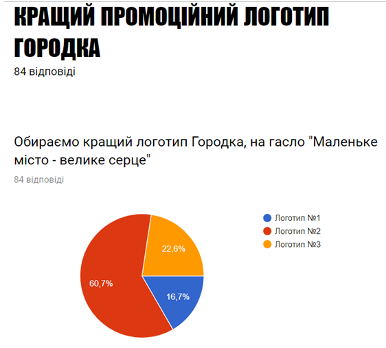 Так, нагадаємо, що протягом 20 днів тривало он-лайн голосування із визначення кращого промоційного логотипу нашого міста. Однак, на жаль, при максимальному поширенні серед населення інформації про такий конкурс, участь у голосуванні взяло лише 84 особи, а відтак, найбільше віддали голосів за Логотип №2 (всього 51 голос).