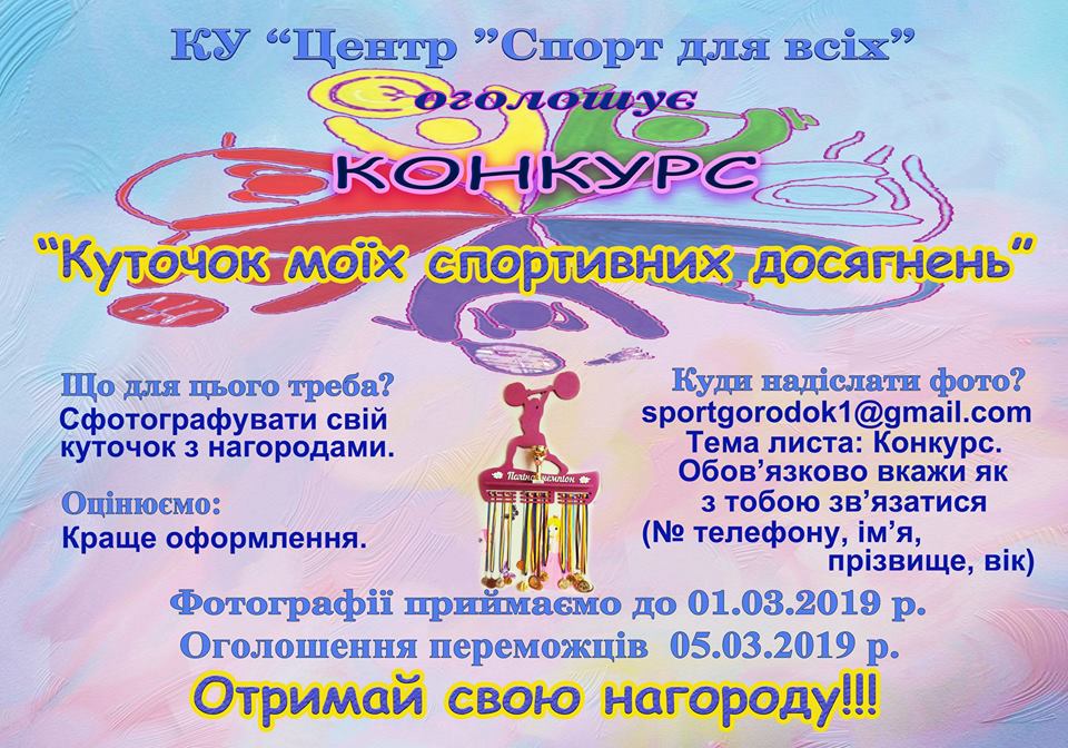 Комунальна установа Городоцької міської ради "Центр "Спорт для всіх" (директор - Богдана Котяш) оголосила конкурс «Куточок моїх спортивних досягнень»!