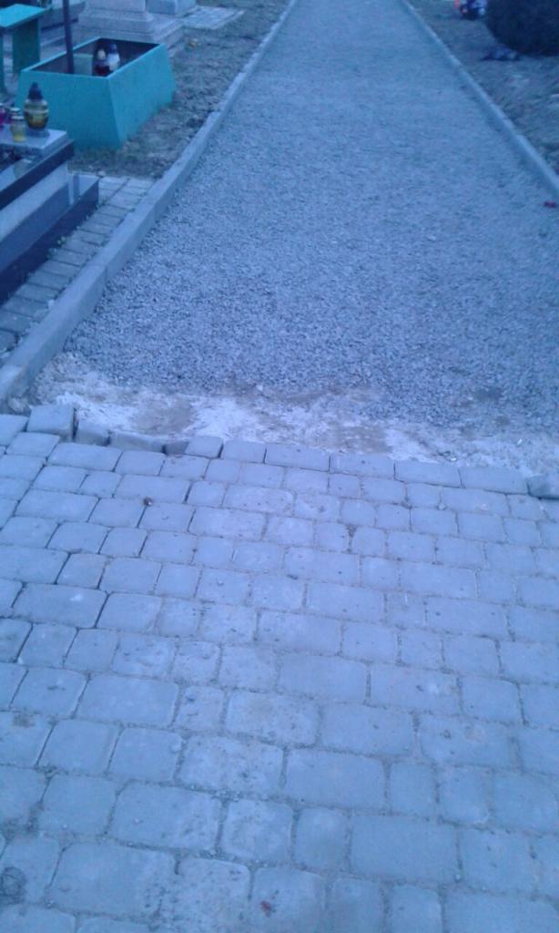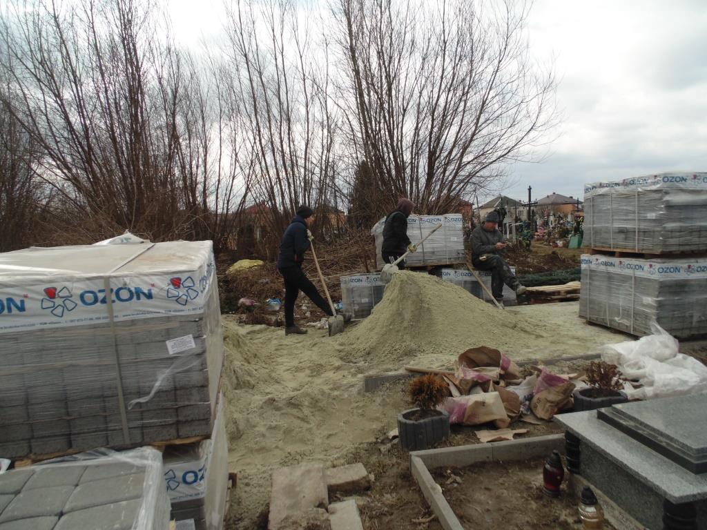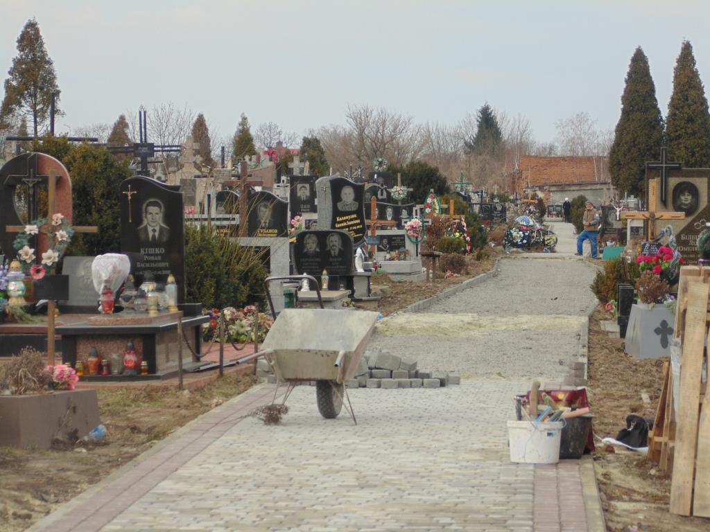 У продовження облаштування благоустрою на міському кладовищі та розбудови пішохідних доріжок, зараз тривають роботи із прокладання бруківки.