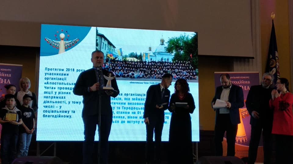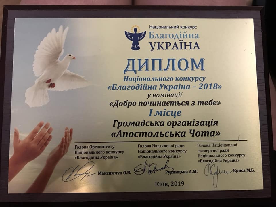 Члени ГО «Апостольська Чота», що успішно діє в нашому місті, повернулись з Києва з радісною перемогою та всеукраїнським визнанням: серед 103 заявок на конкурс саме наші краяни посіли перше місце в номінації «Добро починається з тебе»!