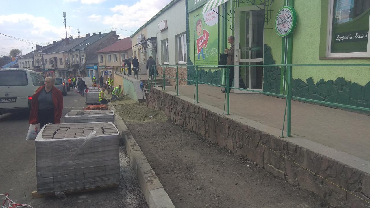 Сьогодні ж в рамках проведення капітального ремонту центральної дороги загального користування державного значення М-11 Львів – Шегині, працівники підрядника ТОВ «Автомагістраль-Південь» саме працюють над розширенням та брукуванням цього тротуару. В подальшому тут, як і вздовж інших тротуарів, планують встановити турнікети – це унеможливить хаотичне перебігання автошляху пішоходами, а також паркування автомобілів у невстановленому місці.