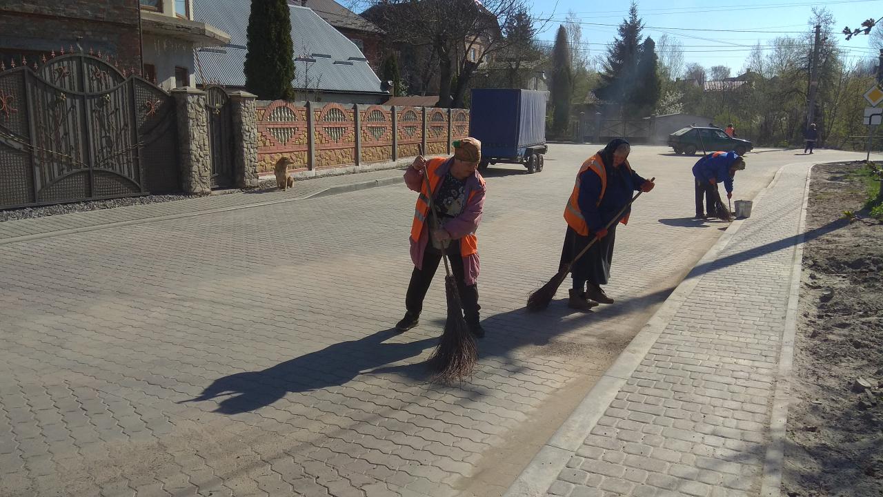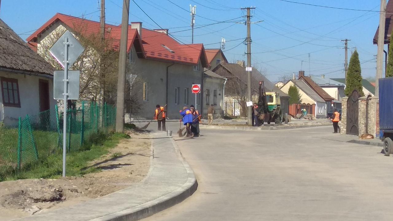 Відтак, працівники комунального підприємства «Міське комунальне господарство» (директор – Степан Кудляк) під керівництвом майстра з благоустрою Дарії Грецко сьогодні наводять тут лад. Ще з ночі, в час відсутності запаркованого автотранспорту та активного дорожнього руху, тут працювала спеціалізована техніка. Зараз же комунальники вантажать та вивозять будівельне сміття, зайві земляні насипи, гіляччя тощо, а двірники замітають прокладену на вулиці бруківку. Дорожню розмітку планують навести до Великодніх свят.