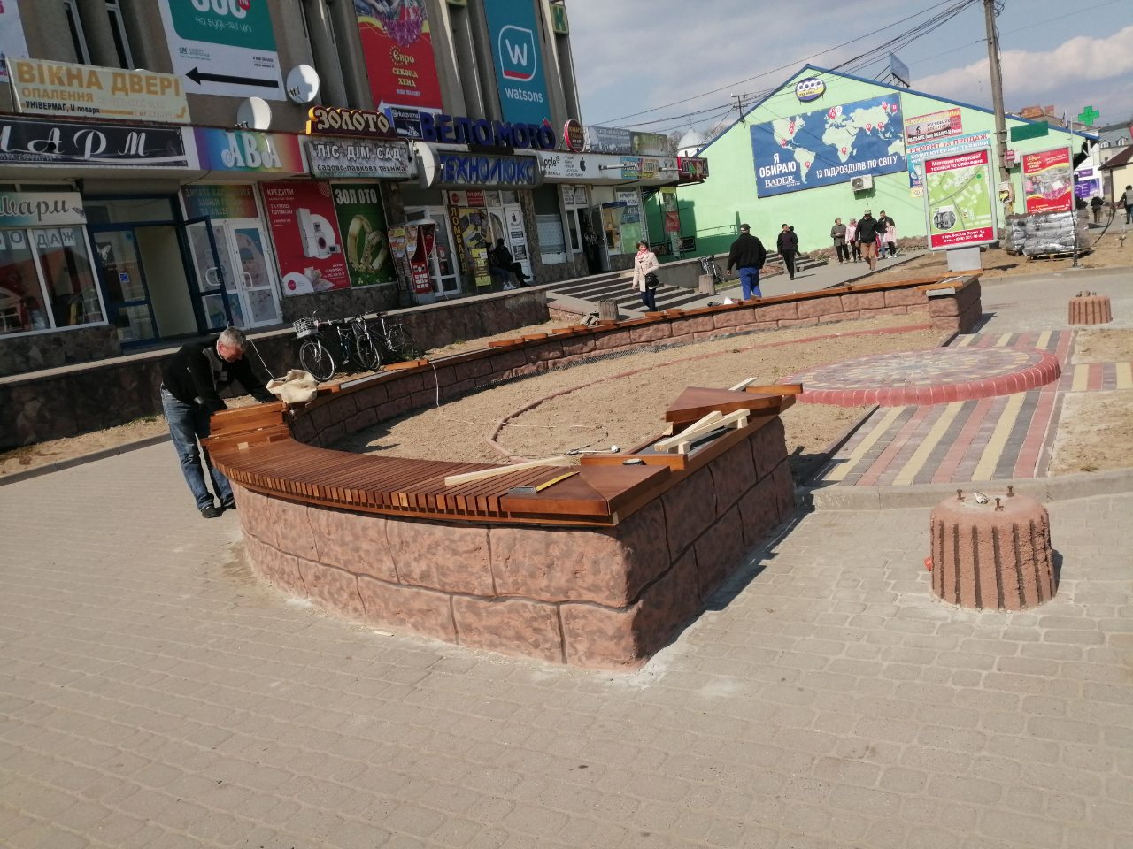 Оновлять і дві сусідні великі прямокутні клумби – тут, окрім декоративних насаджень, планують застелити рулонний газон. Працюють над оновленням площі та клумб спеціалісти ТОВ «Тройдбуд» (керівник Тарас Садов’як). На проведення поточного ремонту, озеленення та благоустрій цієї площі з міського бюджету на позачерговій сесії виділено 199 тисяч грн.
