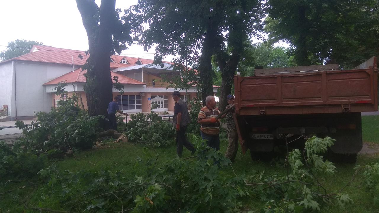 Сьогодні комунальникам додалось роботи: наслідком вчорашньої вітряної погоди у Старому парку стали зламані гілки дерев. Силами працівників КП «Міське комунальне господарство» наслідки негоди ліквідовано.