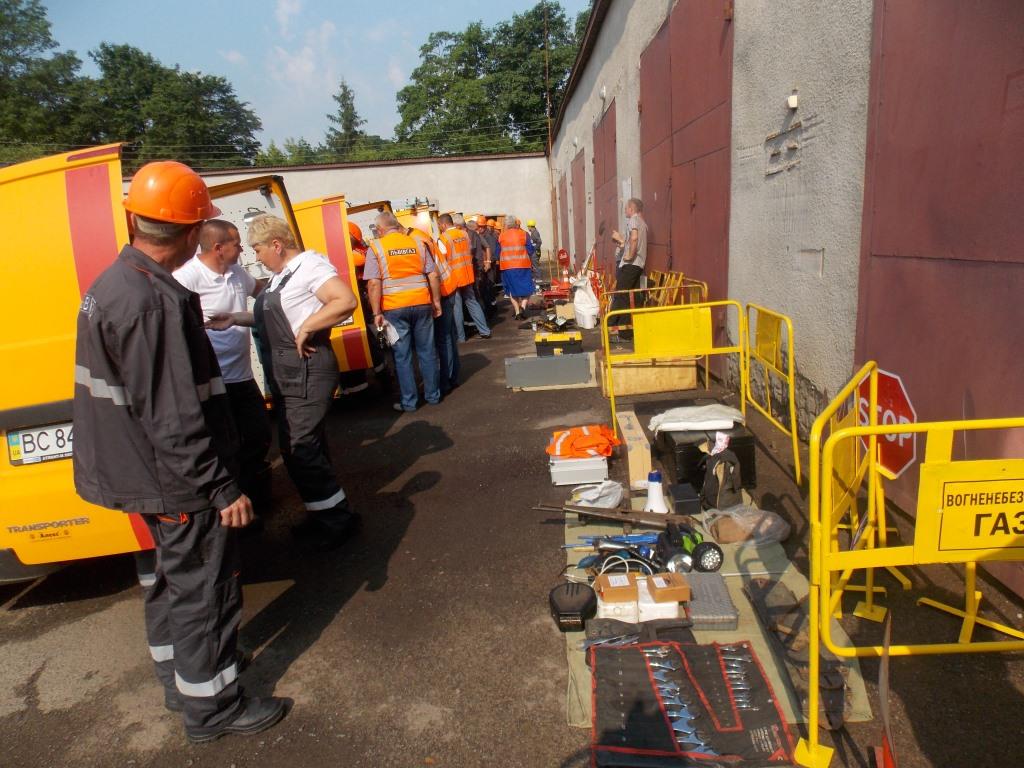 Як ми повідомляли, сьогодні у Городку проводиться обласний конкурс-огляд аварійних бригад газових служб. Вперше у нашому місті, на подвір’ї Городоцької районної служби, філії Яворівського УЕГГ ПАТ «Львівгаз» (керівник – Василь Мелець) вишикувались вісім бригад, із кожного відділення Львівщини. Переможець сьогоднішнього конкурсу поїде на регіональні змагання, а далі – на всеукраїнські. Позаминулого року переможцем у змаганнях стала саме команда від «Львівгазу».