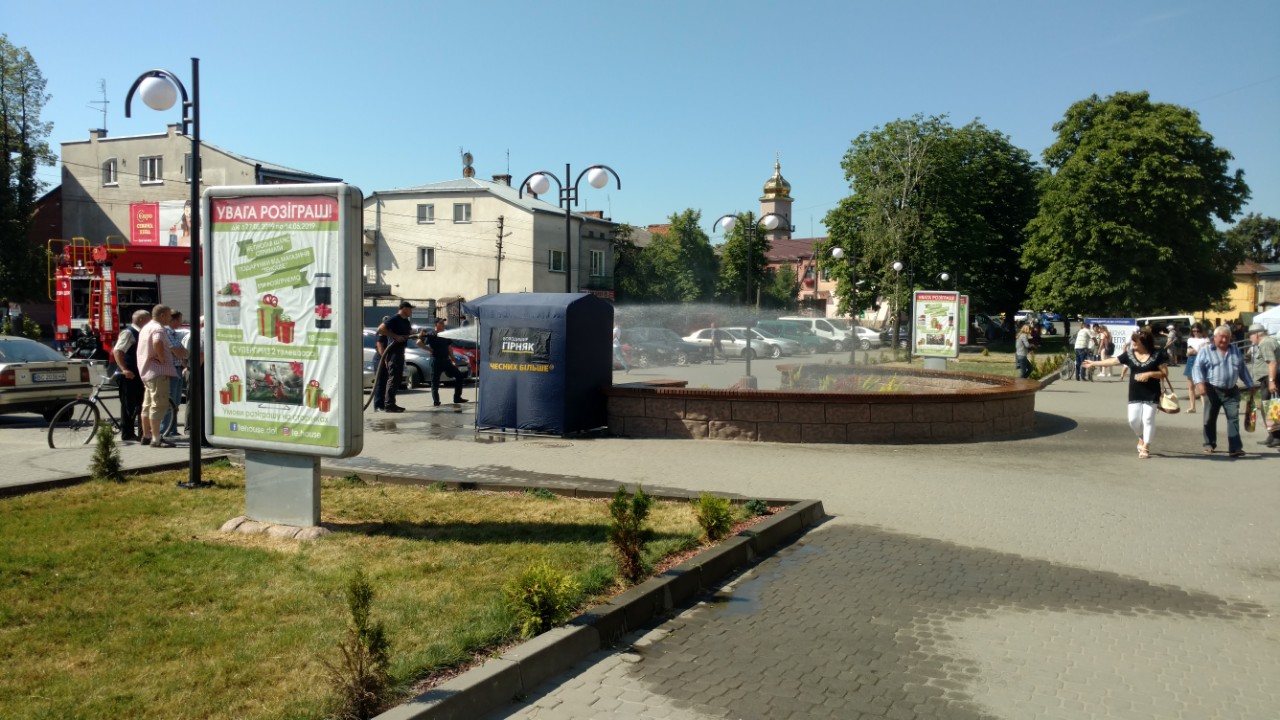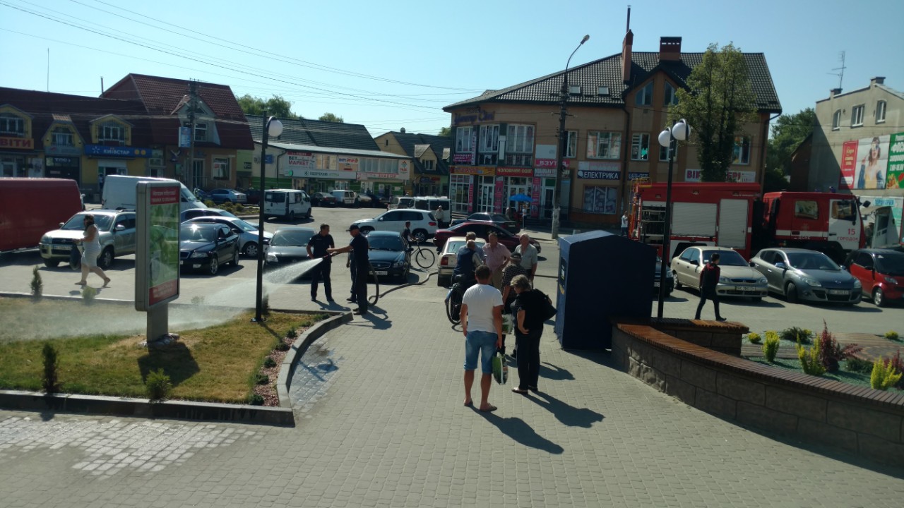 Справедливе обурення городківчан у мережі Facebook, викликане тим, що вчасно не политий газон та насадження на площі перед Універмагом, сьогодні допомогла «погасити» служба ДСНС.