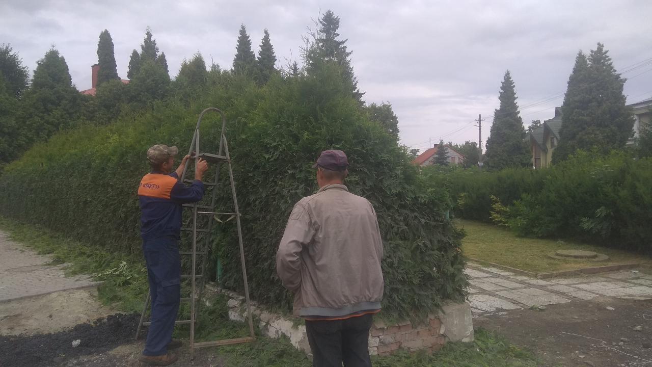 Працівники, зокрема, ретельно підстригли туї обабіч площі та прибрали територію. В майбутньому, за задумом мерії, тут впорядкують площу та зелені насадження, на зразок благоустрою площі перед Універмагом.