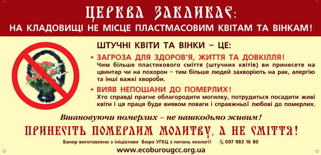 Позичаємо інформаційний банер у Бюро з питань екології УГКЦ. Та ще раз просимо задуматись…