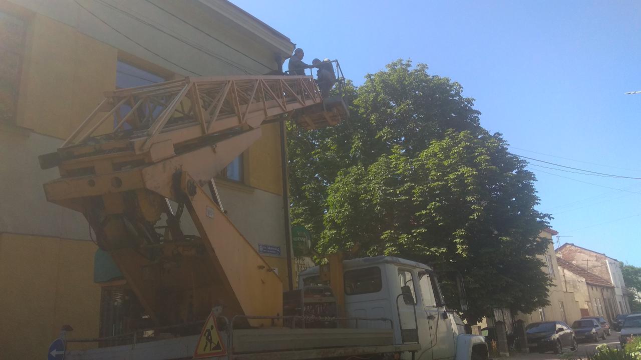 Сьогодні працівники ПП «Елтех» приступили до проведення робіт з вуличного освітлення частини площі Майдану Гайдамаків, що біля будівлі районного Народного дому в центрі Городка.