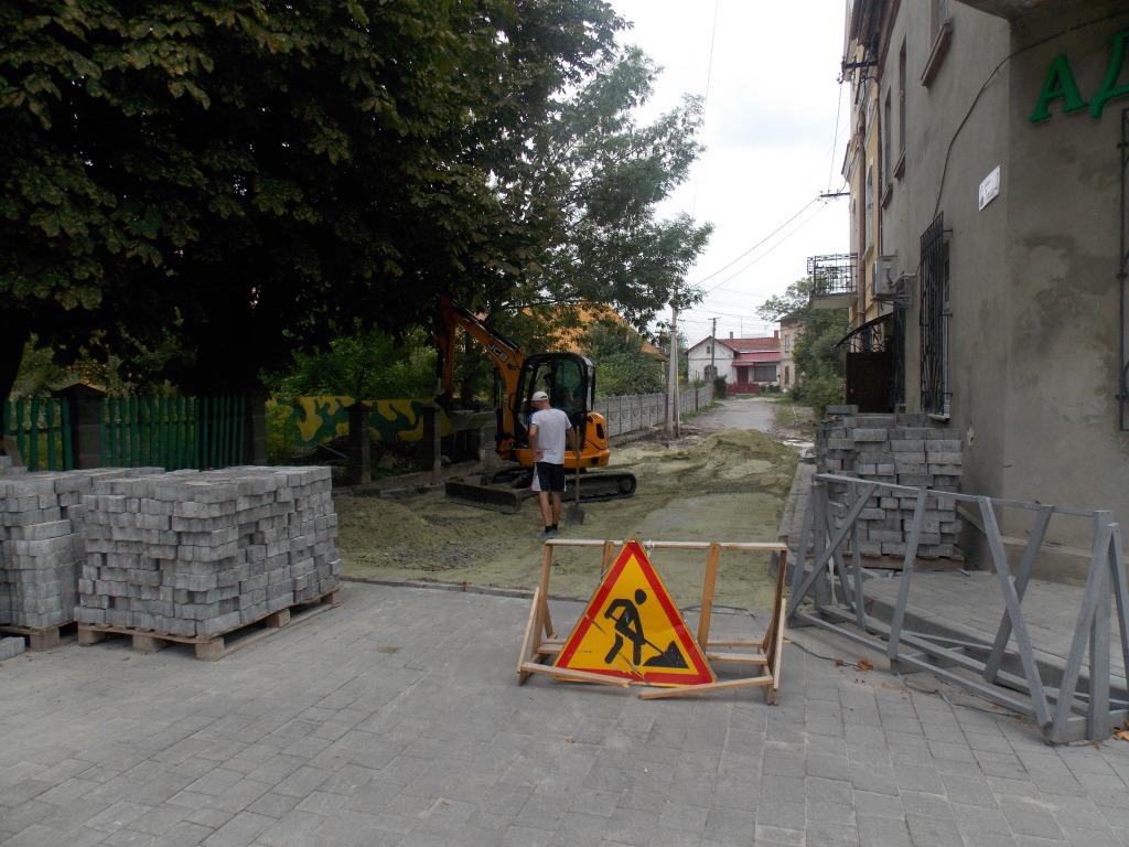 Проектом передбачено виконання робіт із замощення дорожнього полотна, влаштування перемикань та прибудинкових територій у бруківці.