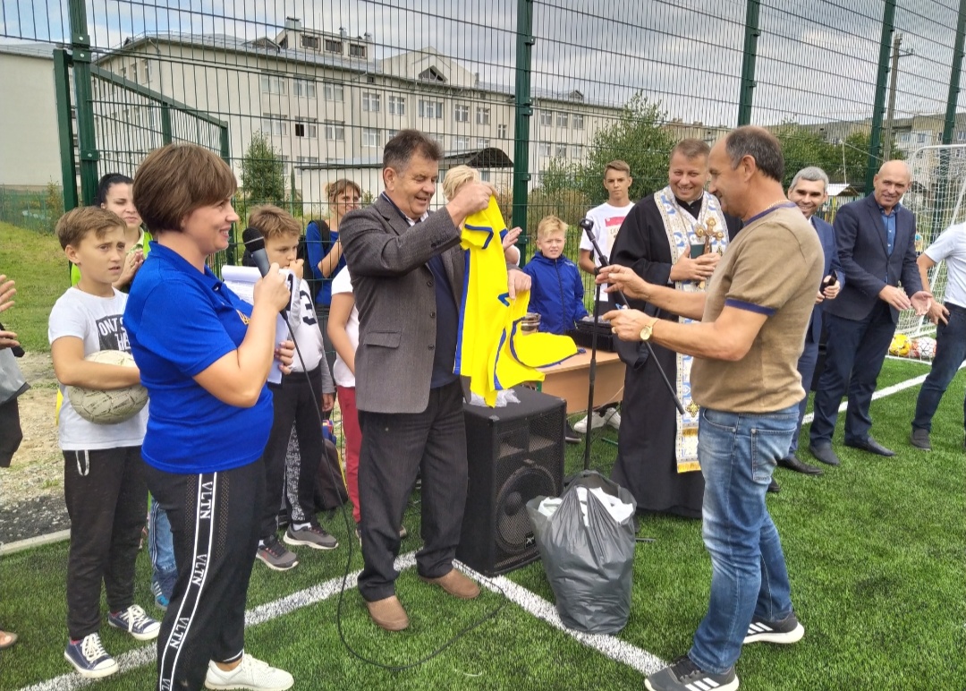 Сьогодні ж новий спортивний об’єкт урочисто відкрито, настоятель храму Турковицької ікони Богоматері о.Степан Целень освятив майданчик. На відкритті спортивного свята присутніх вітали керівник обласної організації «Центр «Спорт для всіх» Вадим Климович, депутати Львівської обласної ради Петро Жукровський та Володимир Саган, міський голова Городка Роман Кущак, керівник КУ «Центр «Спорт для всіх» Вікторія Місько, директор Городоцького НВК №5 Оксана Іщук, керуючий справами Городоцької районної ради Іван М’єскало, завідувач відділу молоді та спорту Городоцької РДА Ірина Міляновська. Городок зустрічав сьогодні чимало гостей, а особливо не було меж радості дітей, які вже випробовують новий спортивний об’єкт: за участю 12 команд розпочали традиційний дитячий футбольний турнір пам’яті олімпійського чемпіона, вихідця з Городоччини Вадима Тищенка. Знаково: нагороди переможцям вручатиме батько знаменитого футболіста.