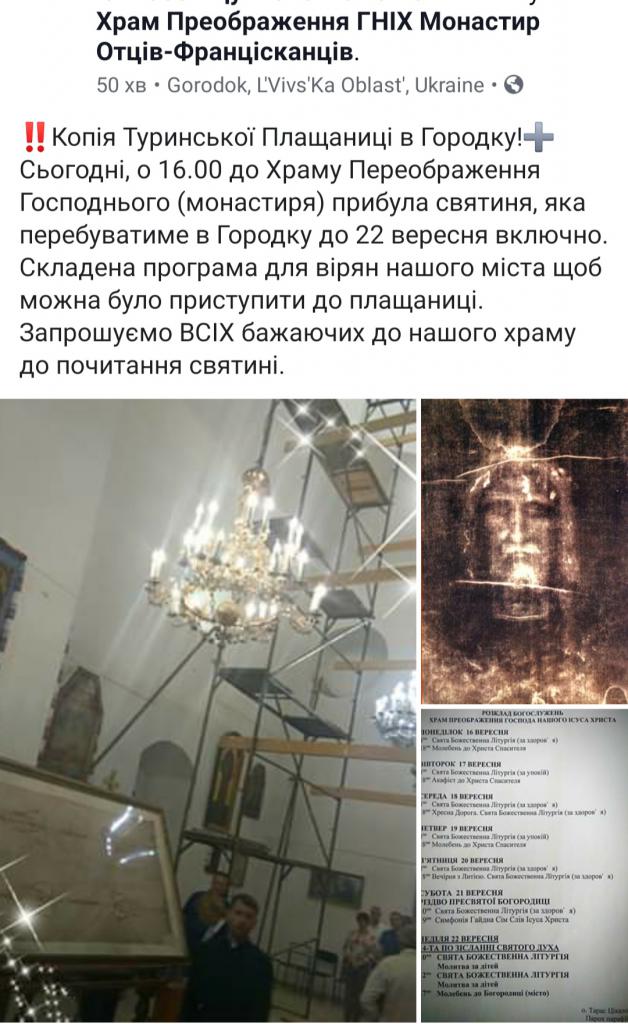 15.09.2019 Сьогодні о 16.00 до Храму Переображення Господнього (монастиря) прибула святиня, яка перебуватиме в Городку до 22 вересня включно. Складена програма для вірян нашого міста, щоб можна було приступити до плащаниці.