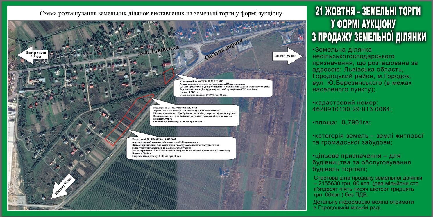 Нагадуємо, 21 жовтня 2019 року продаватимуть одразу три інвестиційно привабливі ділянки вздовж об’їзної дороги (на фото, у прикріпленому файлі- у читабельному збільшеному форматі)