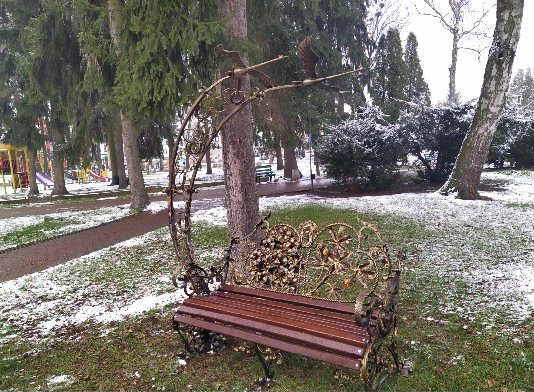 Детально про поданий проект – за посиланням. Втілив гарний задум в реальність талановитий коваль Ігор Цюпка. А насолодитись красивим витвором мистецтва з глибоким змістом та зробити фото всі охочі можуть вже сьогодні – лавку встановлено у сквері на майдані Гайдамаків, навпроти ДРАЦСу, як зазначала автор. У композиції лавки – підкови на щастя, чарівні квіти, серця та два журавлі, що розмістились у польоті над головами тих, хто сидітиме на лавці. Найближчим часом міська рада планує також належним чином освітити композицію.