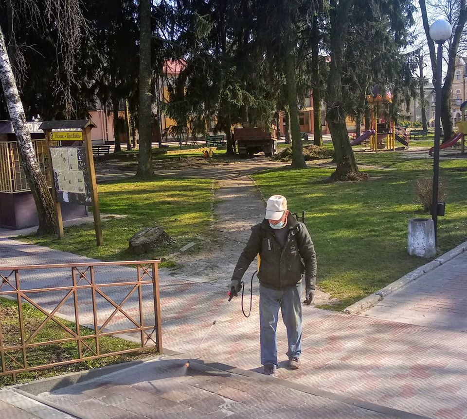 - працівники КП «Міське комунальне господарство» проводили дезінфекцію місць масового скупчення людей (під’їзди багатоквартирних будинків, тротуари, площі в центральній частині міста, дитячі майданчики, адміністративні приміщення бюджетних установ, банки та ін.).