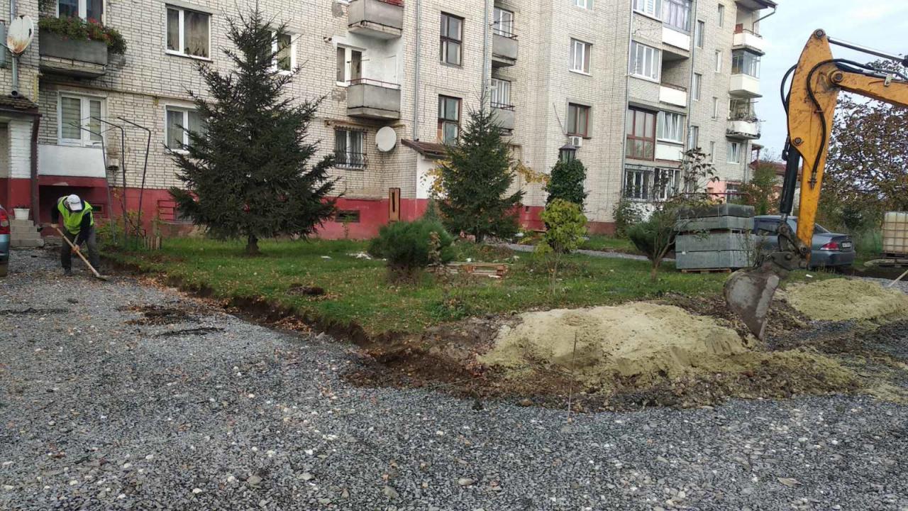 На вулиці Чорновола продовжується капітальний ремонт заїзду між багатоквартирними житловими будинками №10-14. Роботи виконує ТзОВ "Тройдбуд" (керівник Тарас Садов'як), відповідно до договору підряду та на виконання заходів Прорами інвестиційного розвитку міста Городка на 2020-2022 роки.
