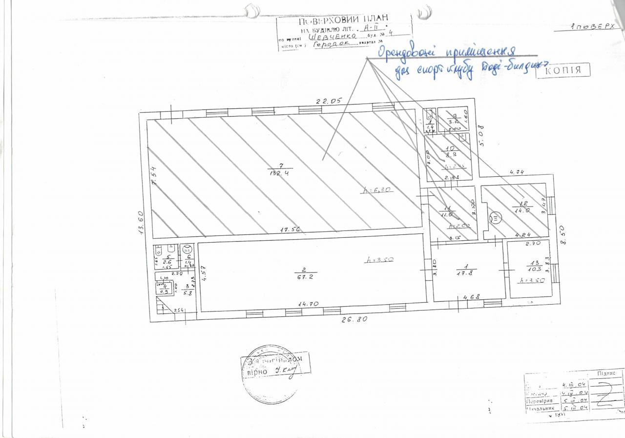 У 2006 році, після звернення орендаря, рішенням виконавчого комітету площа орендованого приміщення збільшилась до 170,9 кв.м. (фото поверхового плану станом на 2006 р. додається), про що укладено договір оренди, проведено оцінку вартості майна та перерахунок ринкової вартості нежитлової будівлі за адресою: м. Городок, вул. Шевченка, 4.