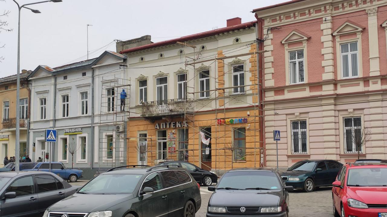 Підходять до завершення роботи із капітального ремонту фасаду багатоквартирного житлового будинку номер 28 в центрі міста на майдані Гайдамаків. Підрядником відновлено ліпнину та колір, відповідно до паспорту фасаду будівлі.