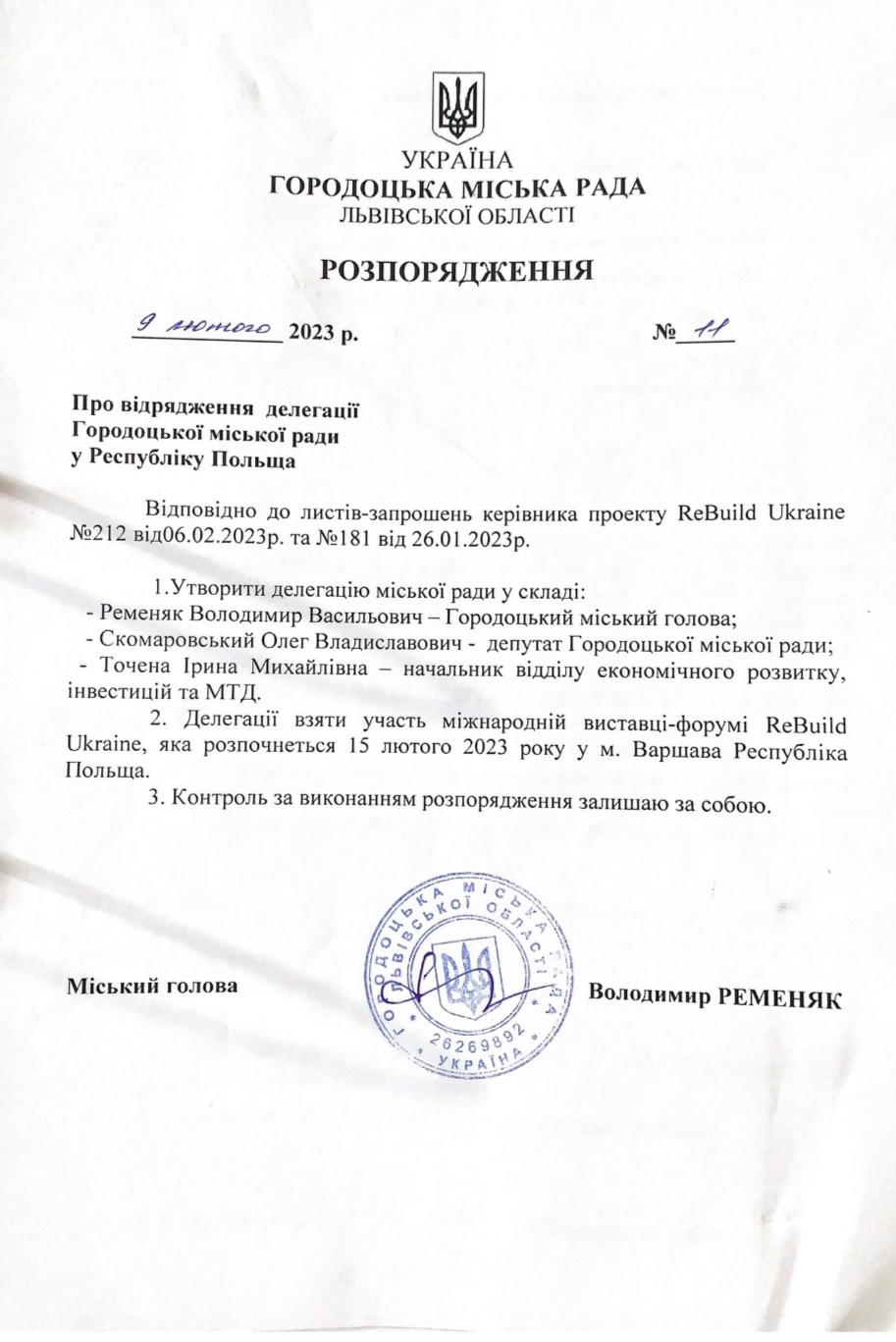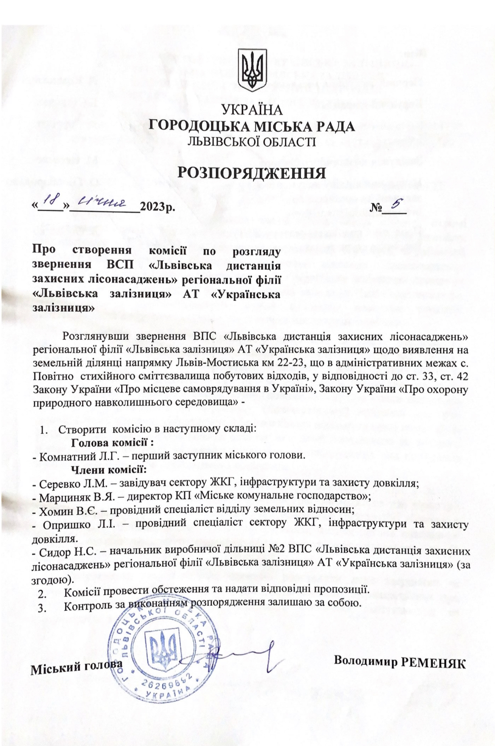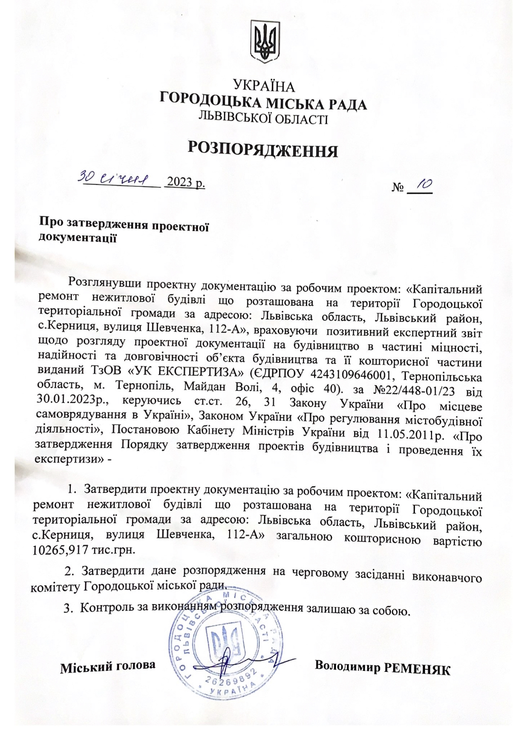 Розпорядження міського голови №10 від 30 січня 2023 року "Про затвердження проектної документації"
