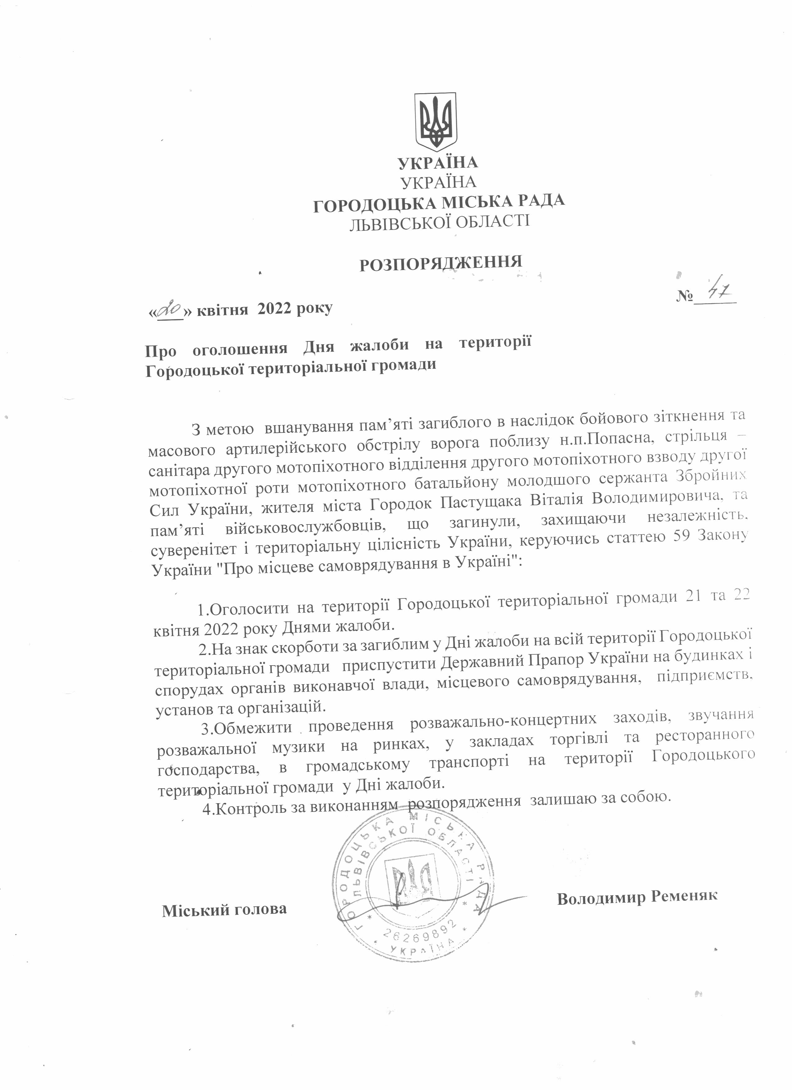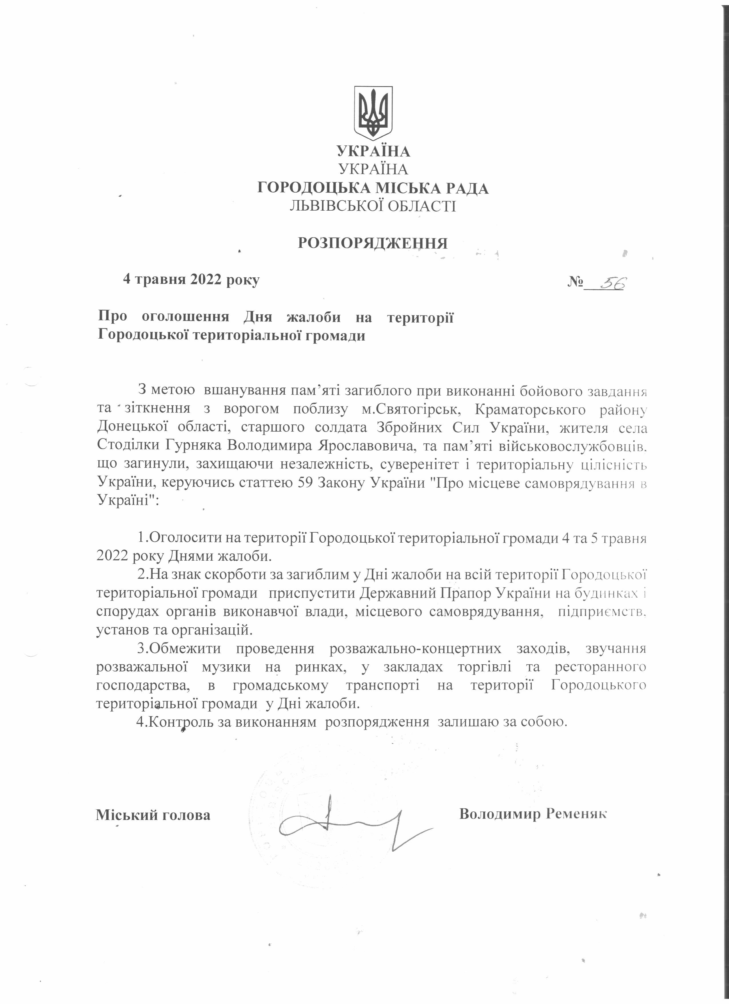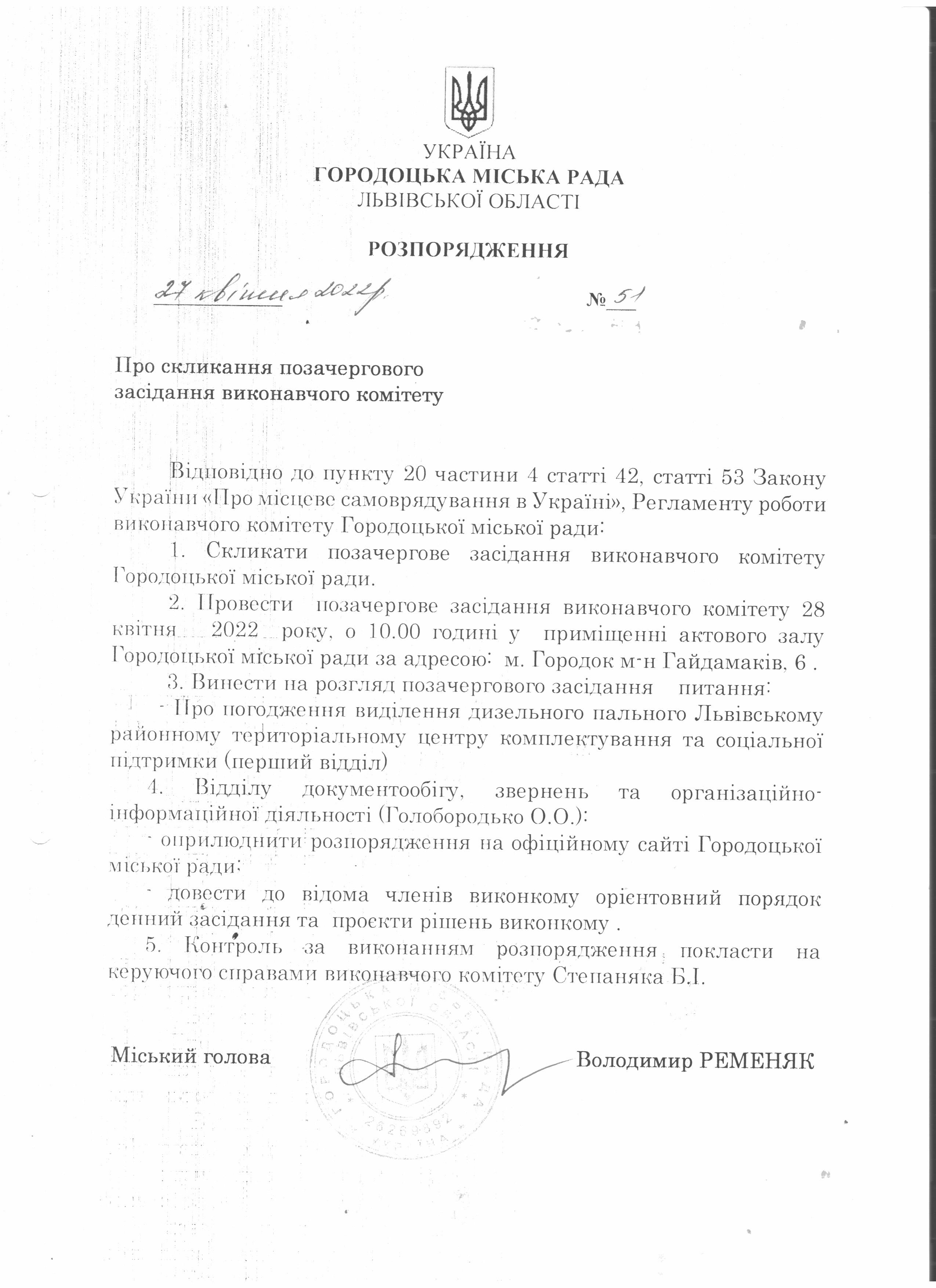 Розпорядження міського голови №61 від 20 травня 2022 року "Про затвердження висновку служби у справа дітей від 20.05.2022 року №1 про підтвердження місця проживання малолітньої Соловей Кіри Василівни, 26.10.2012 р.н., для тимчасового виїзду за межі України"