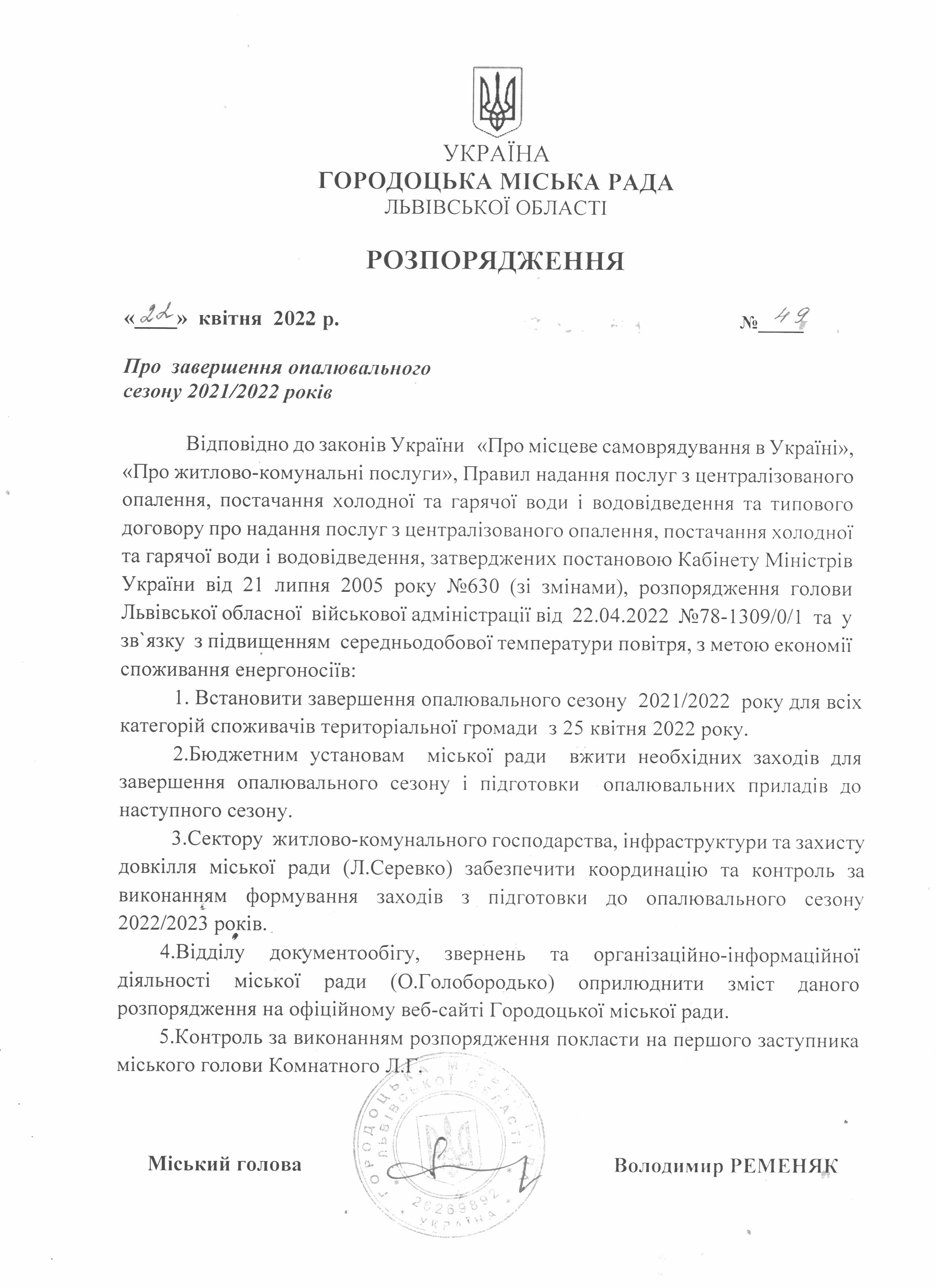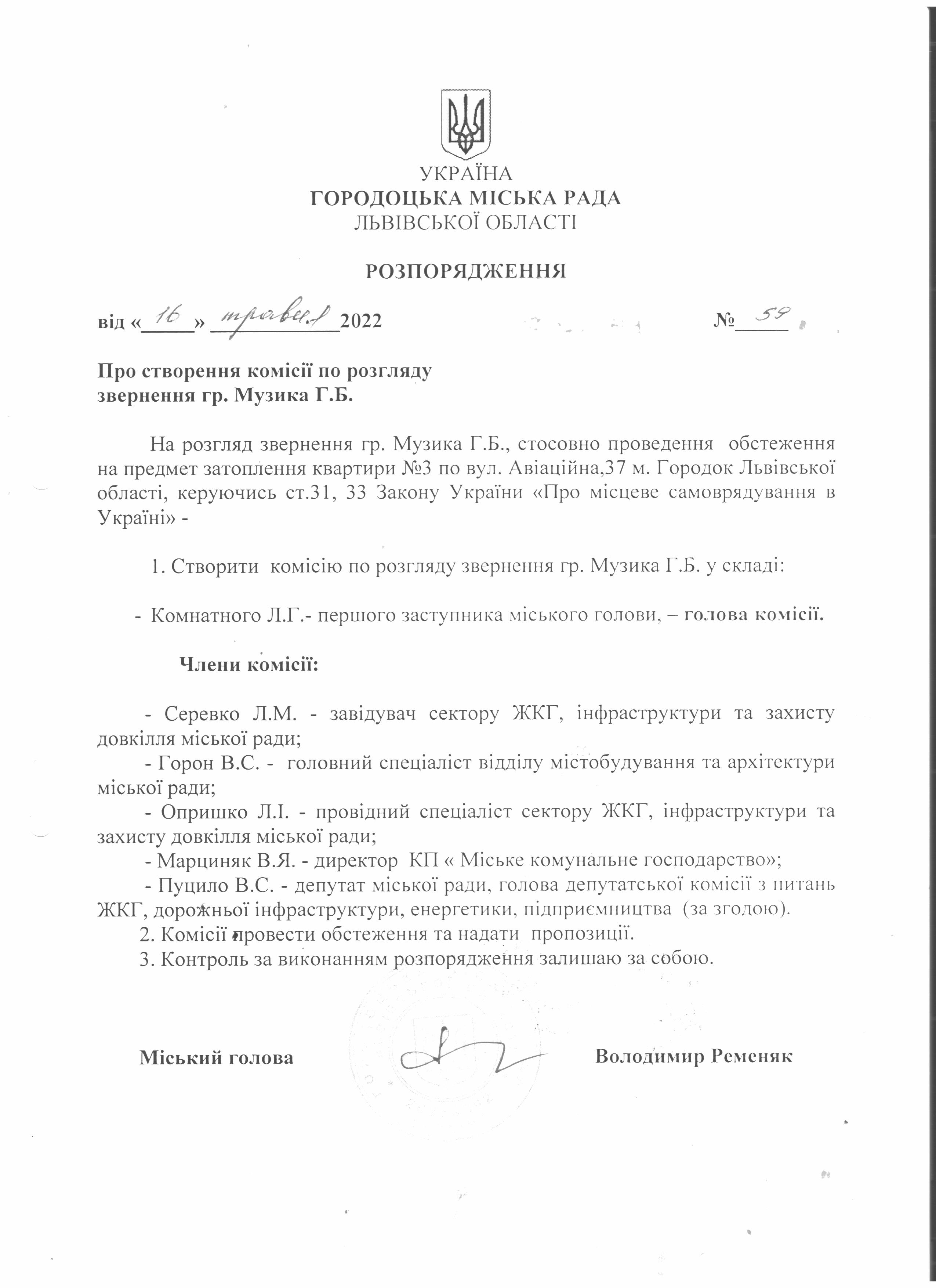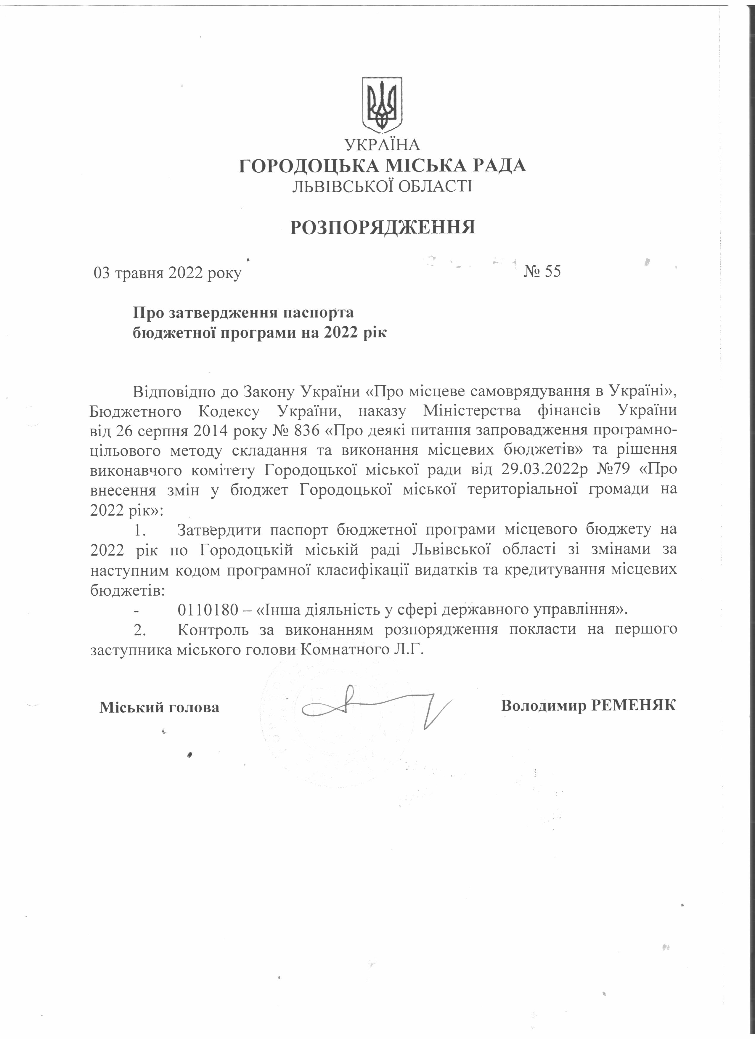 Розпорядження міського голови №61 від 20 травня 2022 року "Про затвердження висновку служби у справа дітей від 20.05.2022 року №1 про підтвердження місця проживання малолітньої Соловей Кіри Василівни, 26.10.2012 р.н..."
