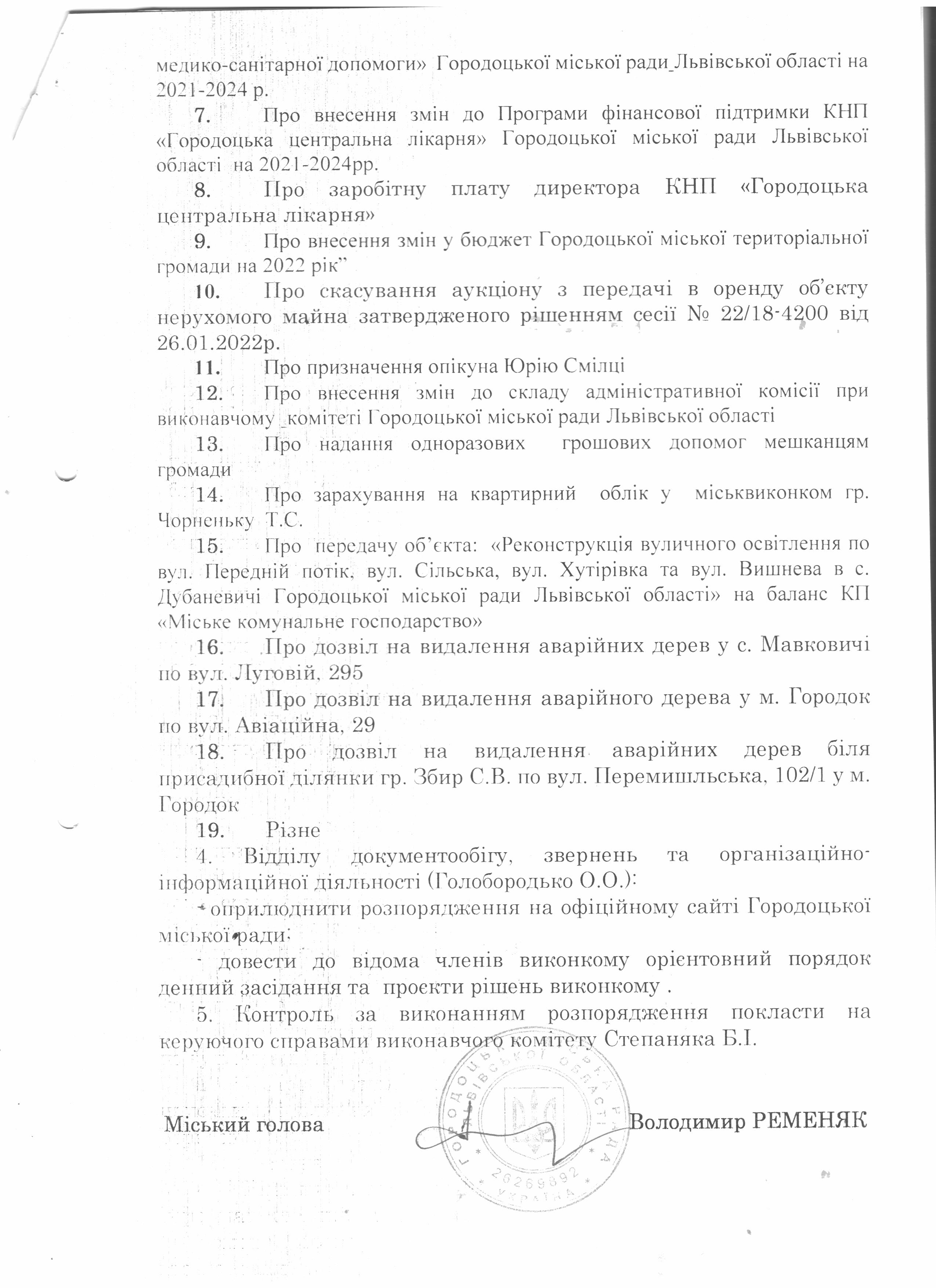 Розпорядження міського голови №41 від 12 квітня 2022 року "Про скликання позачергової 21 сесії Городоцької міської ради восьмого скликання" Файл: 41.pdf